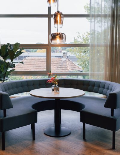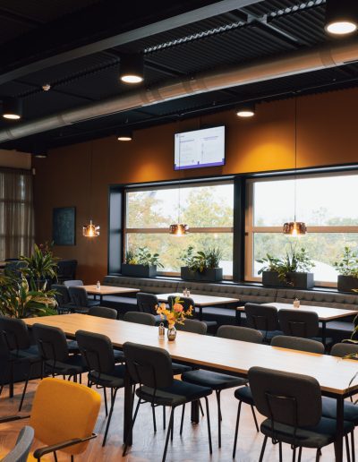 Type advies: compleet interieurontwerp voor herinrichting van het restaurant, aanbouw en restyling uitgiftebalie en bar en aanpassing aangrenzende vergaderruimtes inclusief projectbegeleiding.