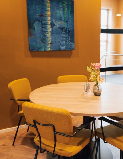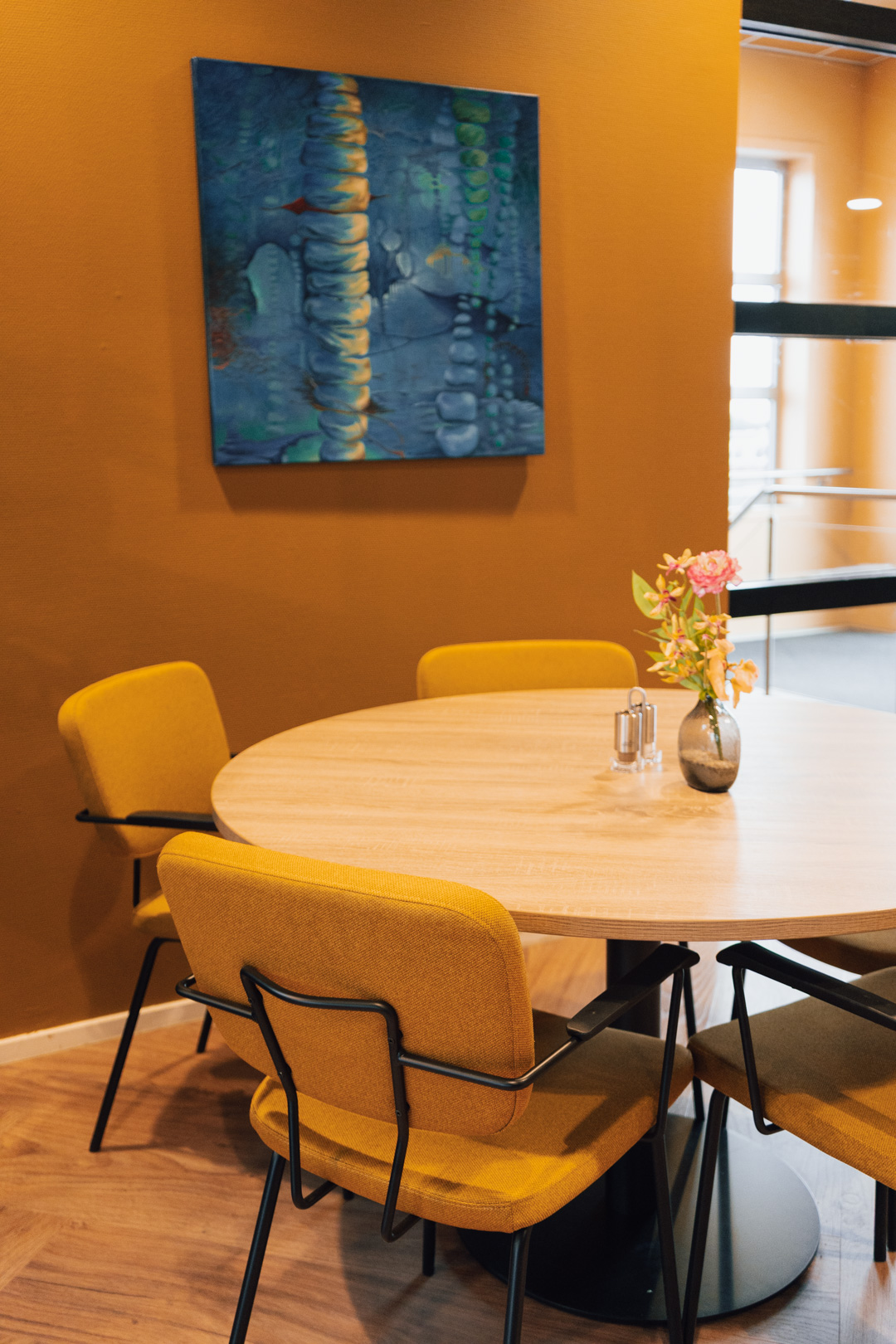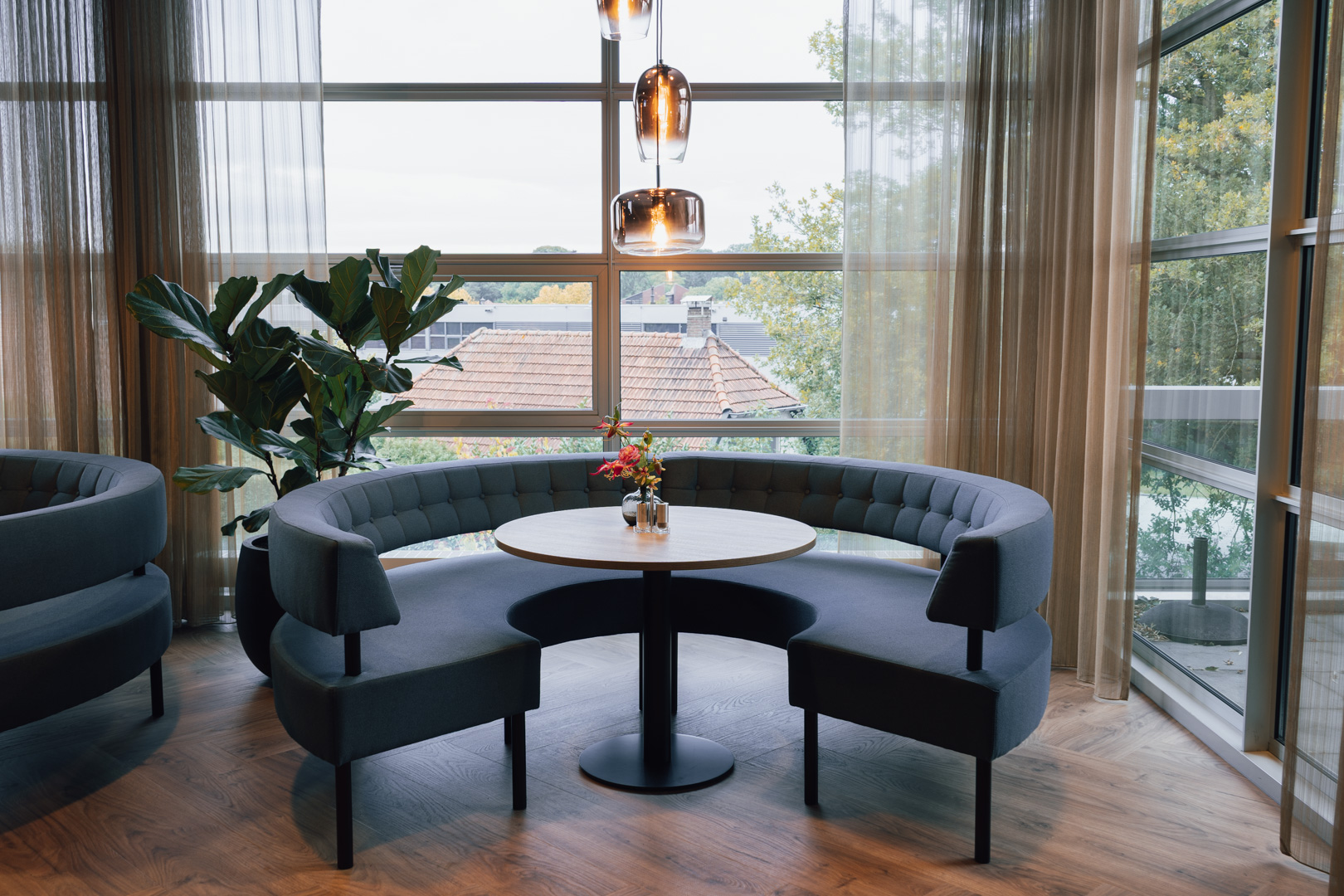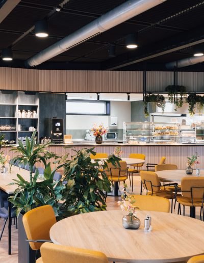 Het bedrijfsrestaurant van Royal Kaak was toe aan nieuw meubilair en een restyling. Het restaurant wordt overdag gebruikt door medewerkers van de productie en de kantoren en het fungeert als flexibele werk- en vergaderplek. Tevens worden er gasten ontvangen en is er ruimte voor groepen mensen die komen voor een bedrijfsbezoek. Met 500 medewerkers is er regelmatig iets te vieren en dat gebeurt ook in deze ruimte.