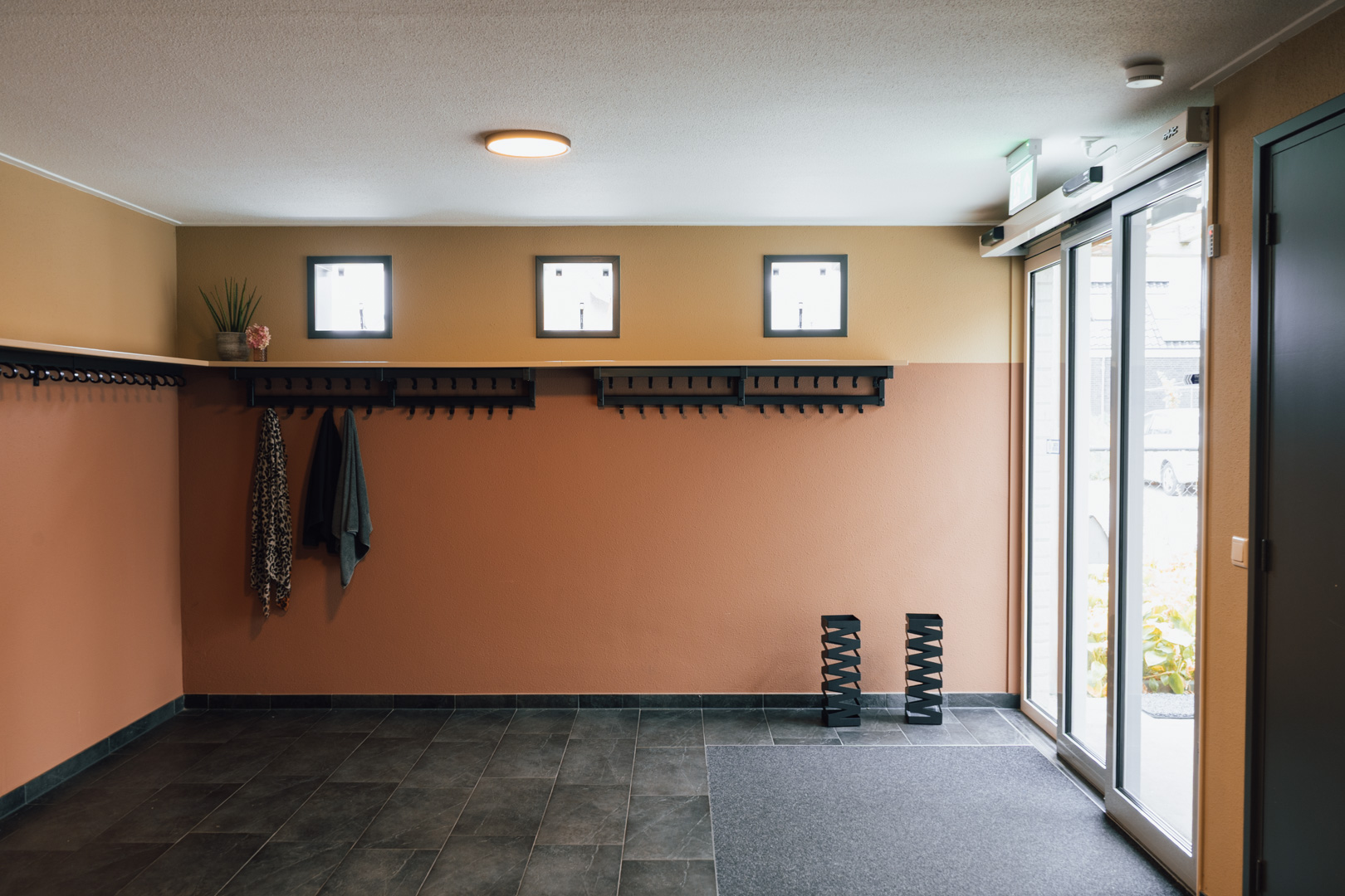 Het dorsphuis van Lievelde wordt intensief gebruikt door een zeer uiteenlopende doelgroep. Het interieur was gedateerd en versleten. De vraag was een restyling van alle ruimtes. Maar omdat niet alles tegelijk kon worden aangepakt, is men begonnen met twee ruimtes die het meest gebruikt worden.